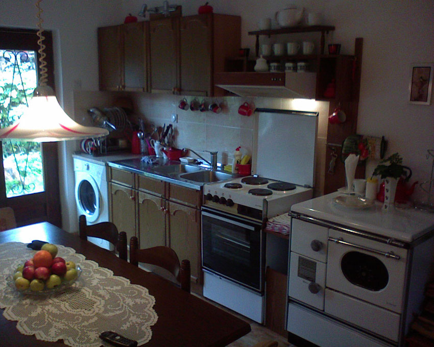 četiri odvojena ležaja. Kuhinja je potpuno opremljena, ima i svoj deo dvorišta sa ligištulima i baštenskom garniturom, TV i wi-fi internet.