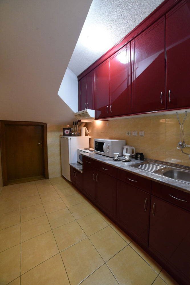 Apartman poseduje francuski krevet u spavaćoj sobi i dva velika kreveta na razvlačenje u dnevnom boravku sa svom pratećom posteljinom. U sklopu apartmana koji se nalazi u prizemlju vile je i velika baštenska garnitura sa delom dvorišta, idealan za porodice sa decom.