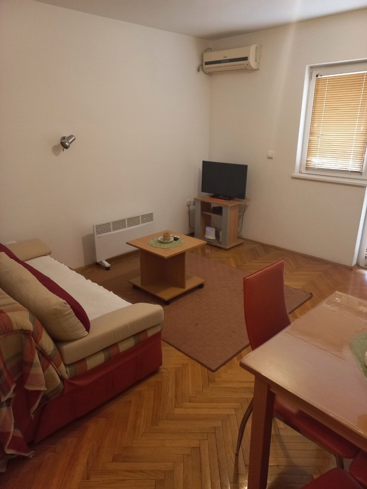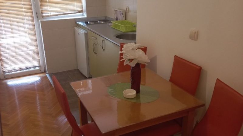 Apartman Kata može da primi do 4 odrasle osobe i kompletno je opremljen: TV, klima, frižider, posuđe... i ima odvojenu spavaću sobu sa bračnim krevetom.