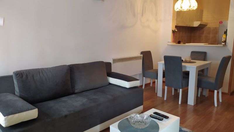 Apartman San ima odvojenu spavaću sobu (francuski ležaj), dnevni boravak (ležaj na razvlačenje), kuhinju, hodnik, kupatilo i terasu. Opremljen je kablovskom televizijom i internetom.
