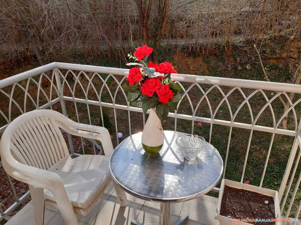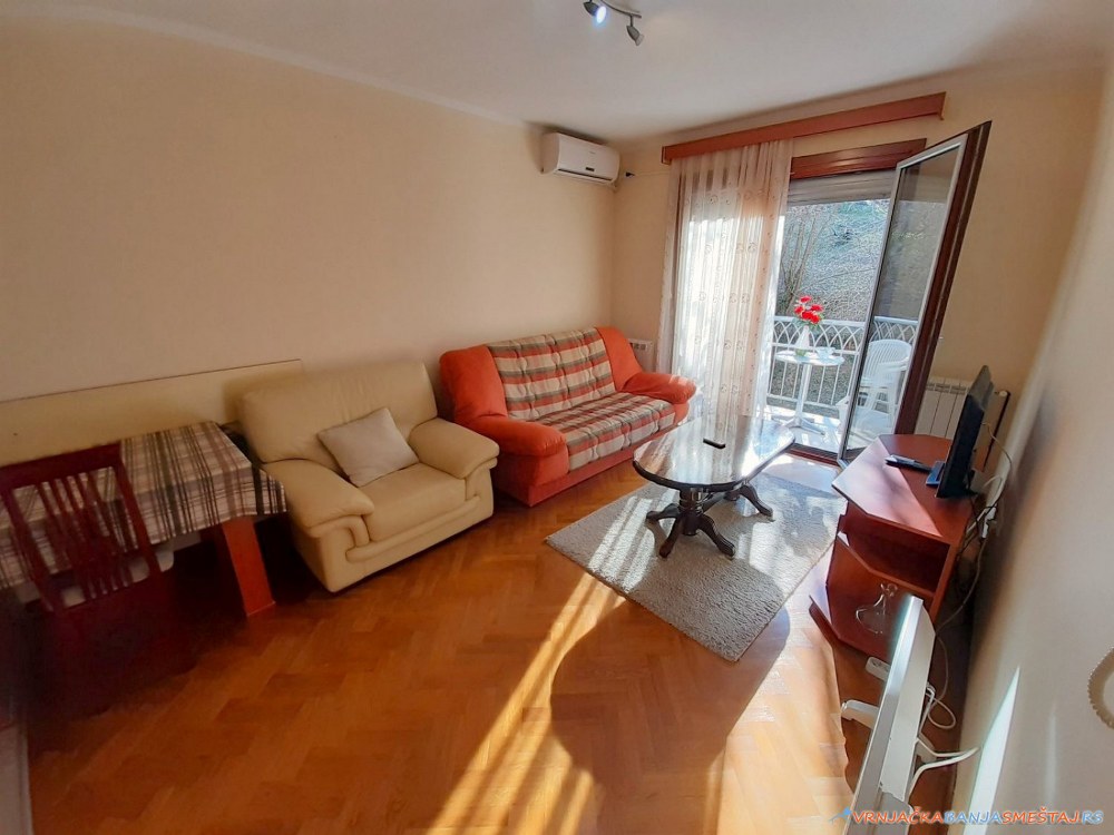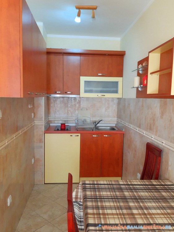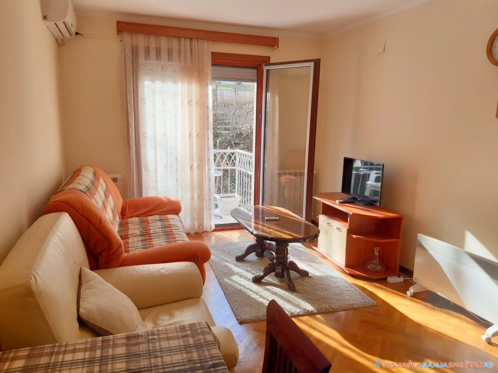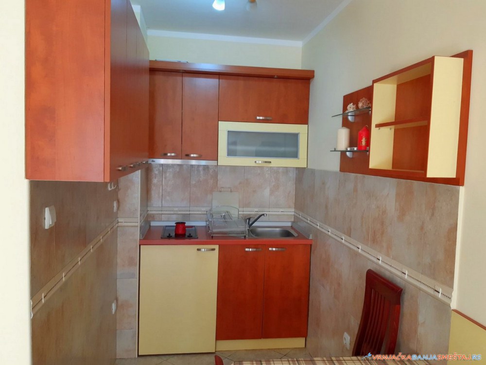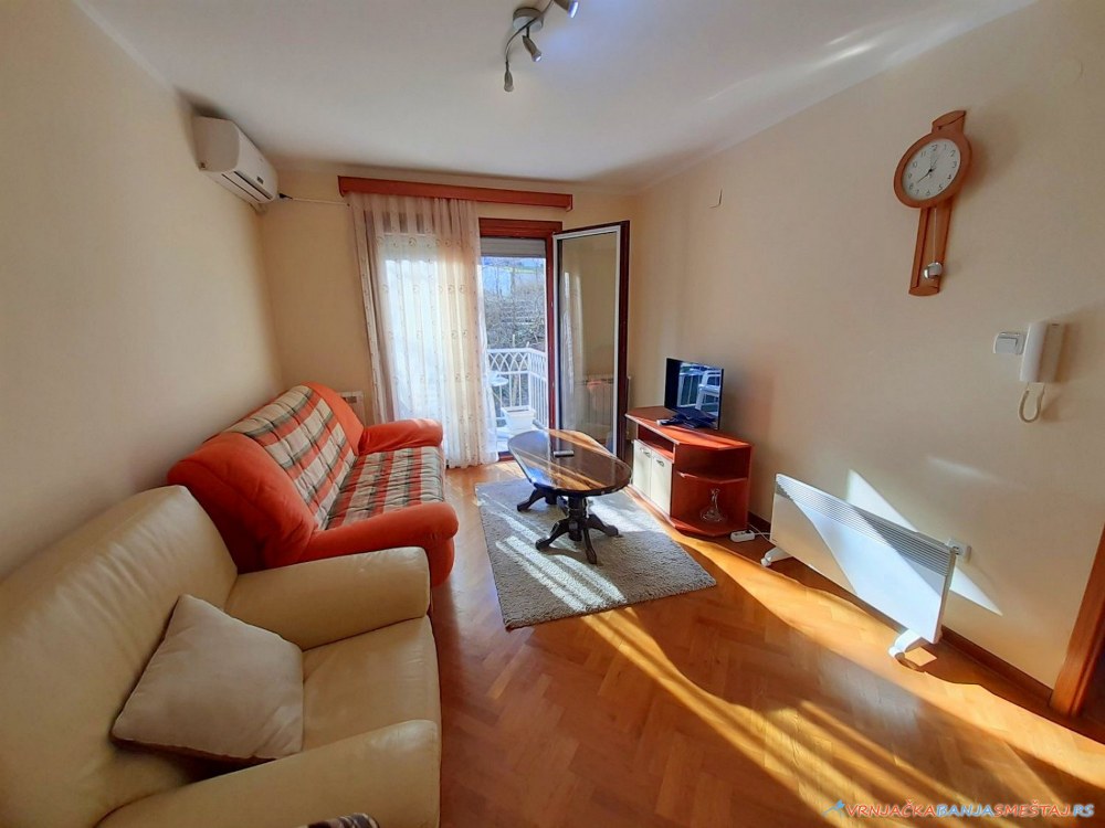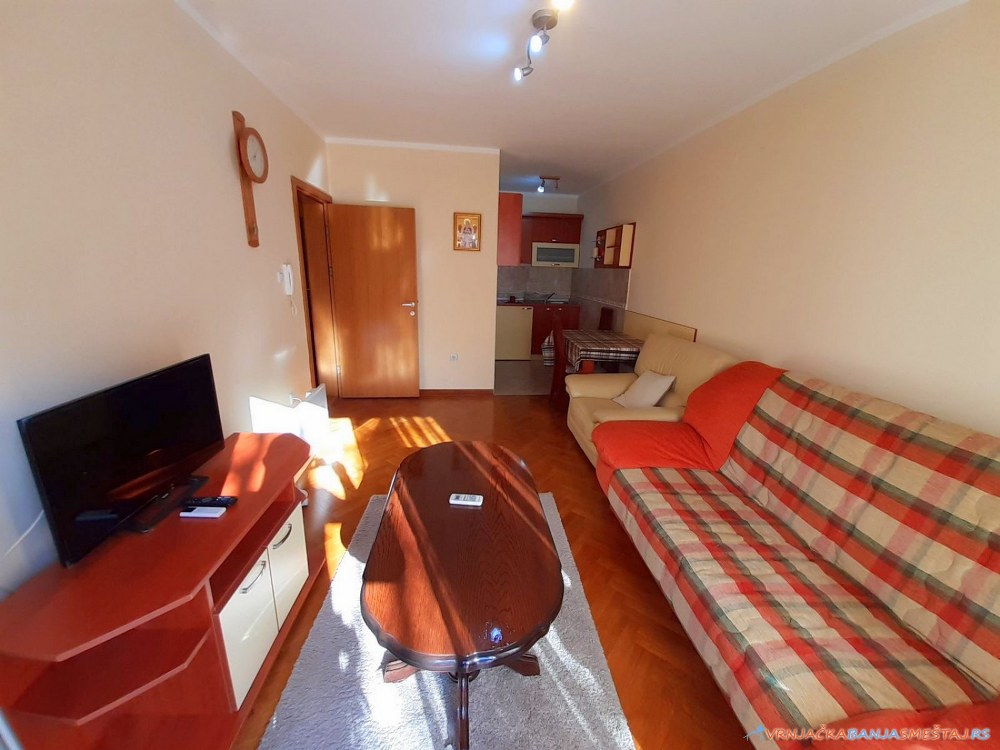 odvojenu spavaću sobu, dnevni boravak sa kompletno opremljenom kuhinjom, kupatilo, hodnik i terasu, opremljen je bežičnim Internetom, kablovskom televizijom, klimom i grejanjem na struju.