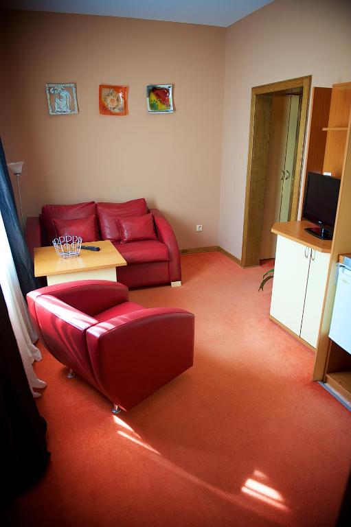 Ovaj apartman se nalazi na 1. spratu i gleda na pešačku zonu. Ima hodnik, dnevni boravak sa kuhinjom, kupatilo sa fenom za kosu, tuš, bademantil i spavaću sobu. Tu je i krovna terasa okružena zelenilom. Čaj i kafa su besplatni.